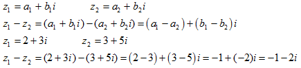 Komplexe Zahlen werden subtrahiert, indem die Realteile und Imaginärteile subtrahiert werden: